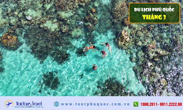 - Nước biển Phú Quốc tháng 3 có độ trong cao, màu xanh ngọc đặc trưng, rất thích hợp để tắm biển và ngắm cảnh.